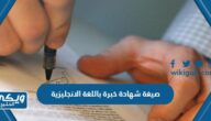 تشهد مؤسسة/…………… إن السيد/………… قد عمل لدينا في قسم الوظائف الإدارية، وقد تميز عمله في جميع الأقسام المؤسسة، وقد قام باستلام العمل منذ يوم (… /…. /…) حتى يوم (… /… /…)، وقد بذل جهدًا كثيرًا في عمله، بل كان يبذل كل ما بوسعه من أجل نجاح المؤسسة، لذلك قدمت له شهادة الخبرة هذه لإثبات ما قام به.