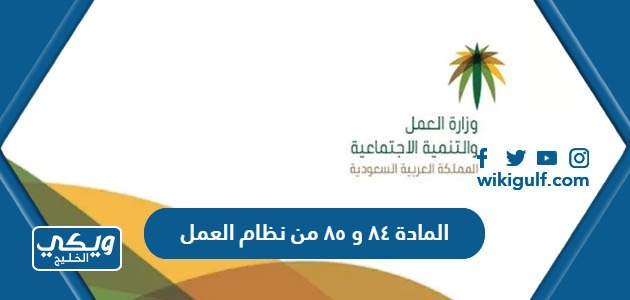 تفاصيل المادة ٨٤ و ٨٥ من نظام العمل السعودي فنظام العمل في المملكة العربية السعودية يحتوي على مجموعة من المواد التي تنظم علاقة العمل بين أصحاب العمل والعمال بما يتوافق مع قانون الدولة، ومن خلال ويكي الخليج سيتم التعرف على نظام العمل السعودي وتحديدًا المادتين رقم 84 ورقم 85 والتطرق إلى نص وتفاصيل كل منهما.