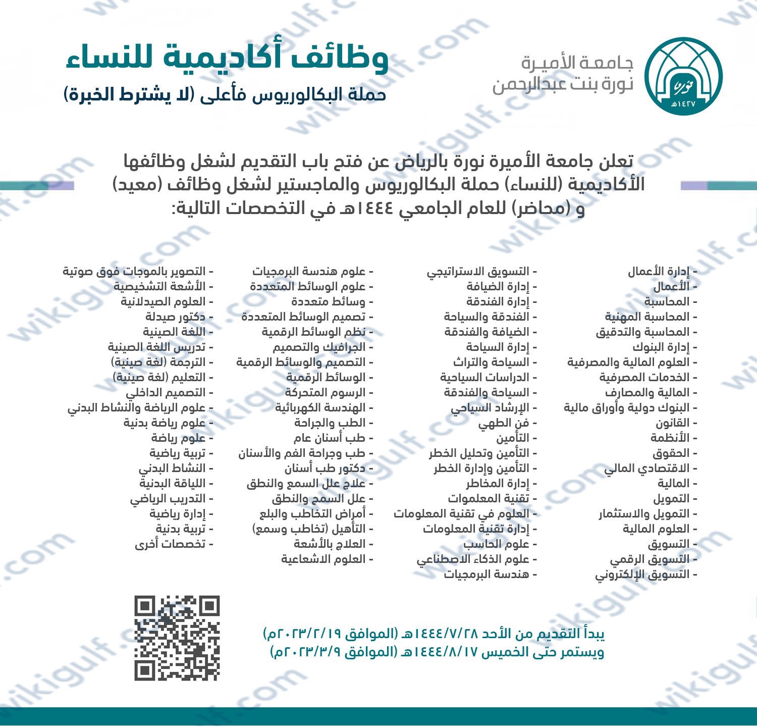 - جامعة الأميرة نورة وظائف الأكاديمية