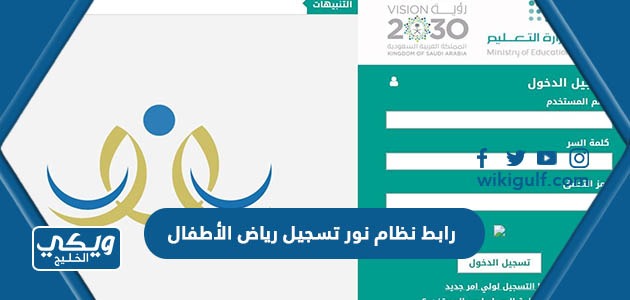 يُمكن رابط نظام نور تسجيل رياض الأطفال noor.moe.gov.sa أولياء الأمور من تَسجيل أبنائهم في مدارس المملكة عن طريق خدمة تَسجيل أبناء التي يوفرها نِظام نُور، ويوفر موقع ويكي الخليج الرّابط الخاص بنِظام نُور تَسجيل رِياض الأَطفال مع شرح كيفية تَسجيل الأبناء في رِياض الأَطفال عن طريق نِظام نُور.